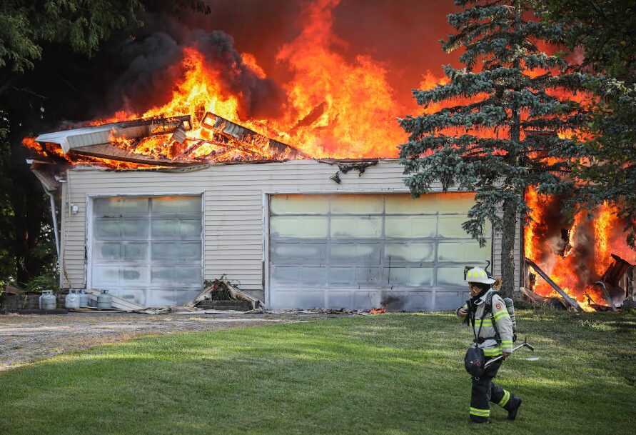 The incident was quickly upgraded to a working fire, then elevated through the Mutual Aid Box Alarm System (MABAS) to the second level for additional manpower and water supply, as the rural area lacks fire hydrants.