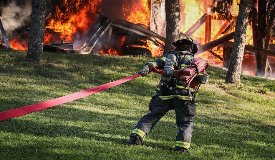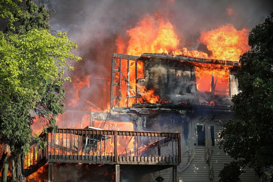 Firefighters arrived within six minutes to find a large two-story home fully involved with heavy smoke and flames, with portions of the structure already collapsed.