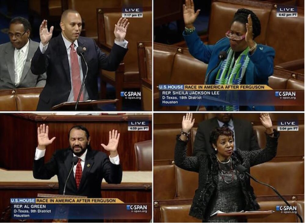 “Hands Up, Don’t Shoot” became the rallying cause of a new group formed after the shooting, Black Lives Matter, which previously was just a hashtag (after the Trayvon Martin shooting).
