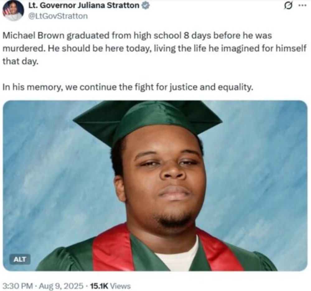 The lie resurfaced today on X on the anniversary of Brown’s death, including in a post by the Lt. Governor of Illinois:
