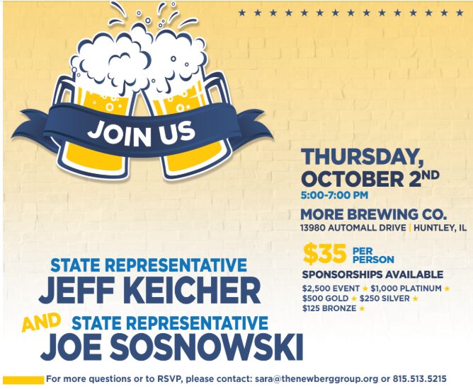 From State Reps. Jeff Keicher and Joe Sosnowski comes this invitation to a $35 fundraiser in Huntley at More Brewing Company: