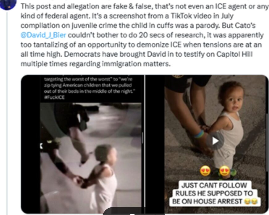 The claim that a toddler was zip-tied originated from a screenshot that went viral, with the original poster claiming it showed an ICE officer zip-tying a child. This has been debunked: The screenshot in question was from a parody video on TikTok for entertainment, where the officer in the video was the father of the toddler seen in the image.