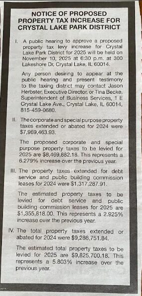 From the Crystal Lake Park District comes this Black Box ad telling taxpayers the damage to their checking accounts next year: