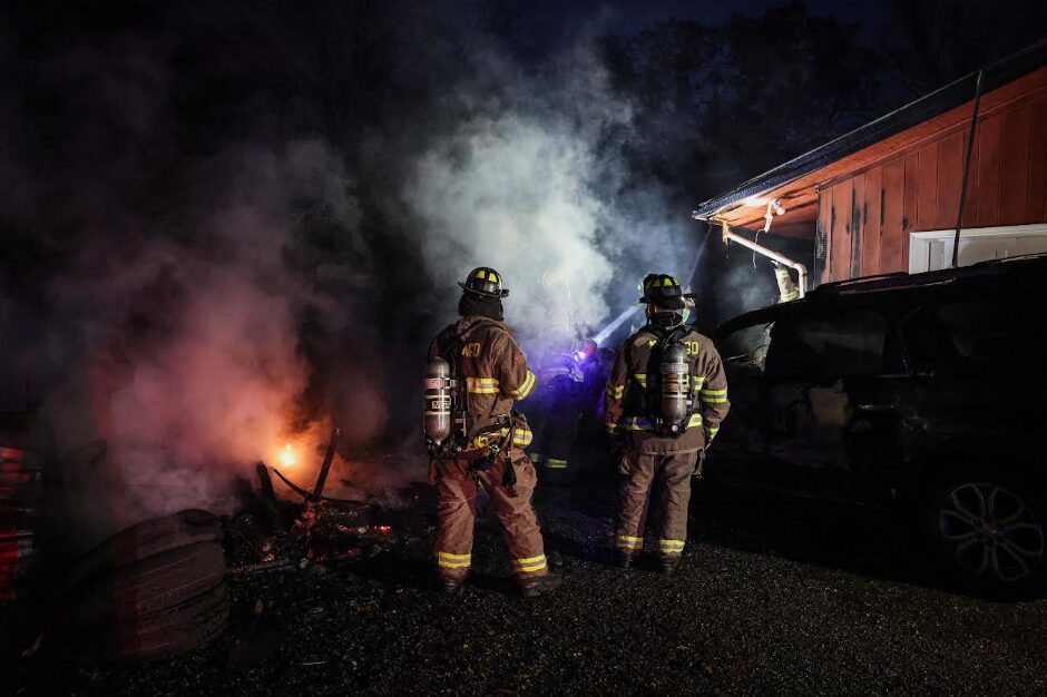 Two vehicles were burning, and the fire had begun spreading to the house, prompting the incident to be upgraded to a working structure fire response and additional personnel and water resources to be requested.