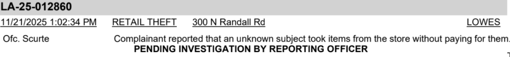 uncategorized Shoplifting at Lowes Cal SkinnerNovember 24, 2025November 24, 2025 From the Lake in the Hills Police: