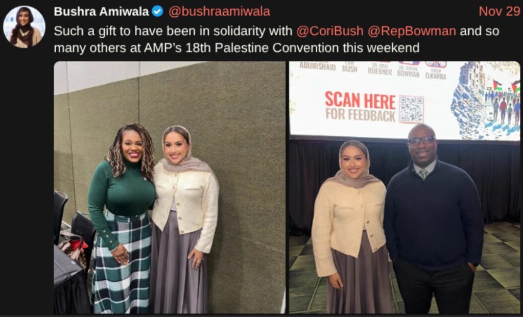 Among the attendees were former members of congress, Cori Bush and Jamaal Bowman, who were part of the left-wing “squad” before losing their primaries.