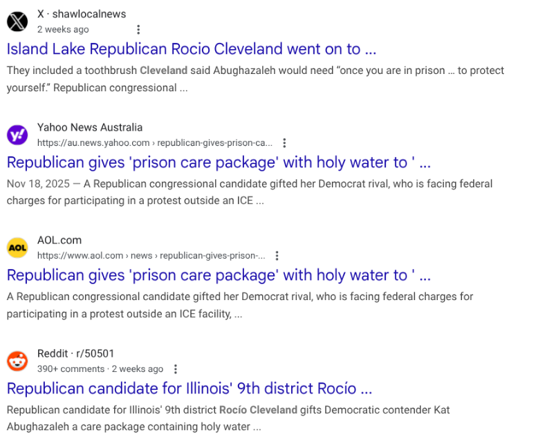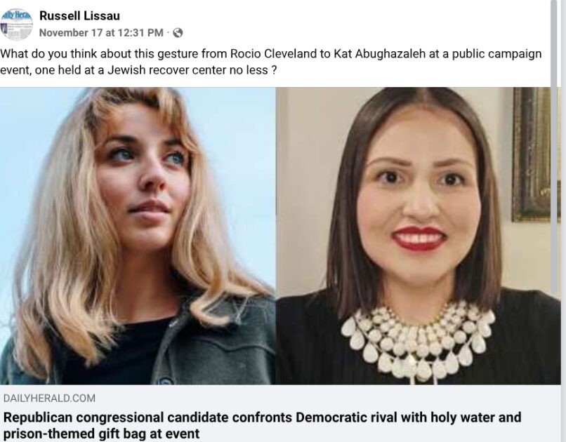 Even John Elleson, a Republican candidate, called out Rocío Cleveland for presenting Abughazaleh with holy water.