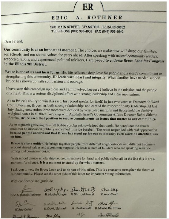 CHICAGO, IL — Orthodox Jewish community leaders in the Illinois 9th Congressional District have announced an endorsement of Bruce Leon for Congress, marking a significant moment of collective support ahead of the March Primary Election.