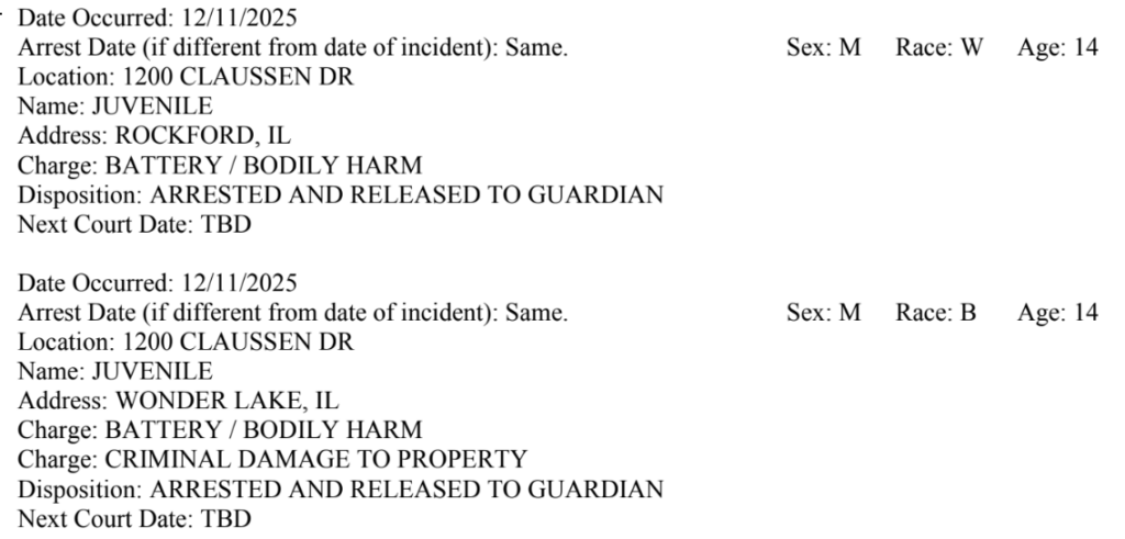 From the Marengo Fire and Rescue Districts: Two-Vehicle Crash Involving Semi-Truck near Marengo On December 15, 2025, at 9:33 a.m., the Marengo Fire & Rescue Districts responded to reports of a two-vehicle crash at the intersection of Kishwaukee Valley Road and Deerpass […]