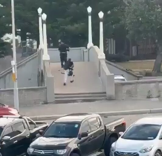 When I read and watched it before going to church this morning, there was about a ten-minute video taken from across the street of two men with rifles shooting many shots from a raised platform with steps going down both sides and a ramp up from the street.