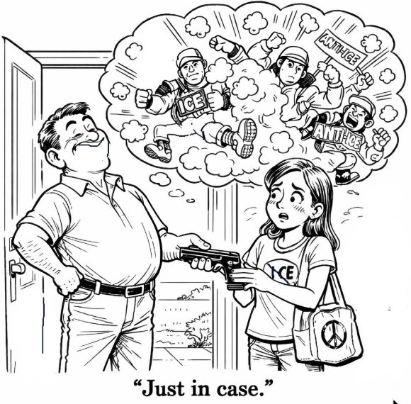 And they knew it was going to happen. There is an 8,000% increase in the number of death threats against ICE agents. We’ve already had numerous incidents of agitators driving their vehicles into ICE vehicles and into ICE agents themselves. We’ve had a shooting at a facility in Texas where illegals were being detained. No doubt, the ICE agents are on their toes anticipating agitators going too far and ready to act accordingly.