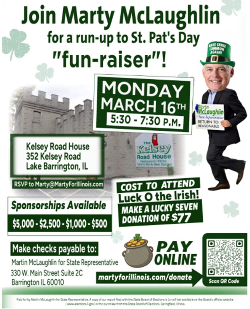 uncategorized McLaughlin Fundraiser March 16th Cal SkinnerFebruary 18, 2026February 17, 2026 From the campaign of State Rep. Marty McLaughlin: