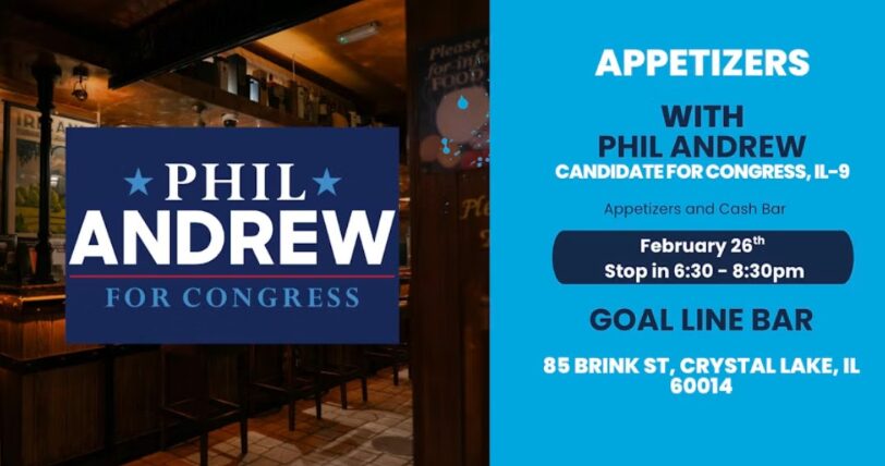 From Democratic Party candidate Phil Andrew comes this invitation to an event at Algonquin’s Scorched Earth Brew Company on February 26th: