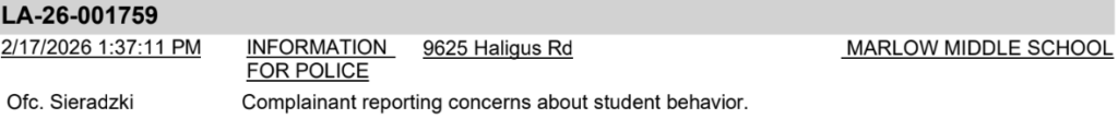 uncategorized Another Problem at Marlowe Middle School Cal SkinnerFebruary 21, 2026February 18, 2026 From the Lake in the Hills Police: