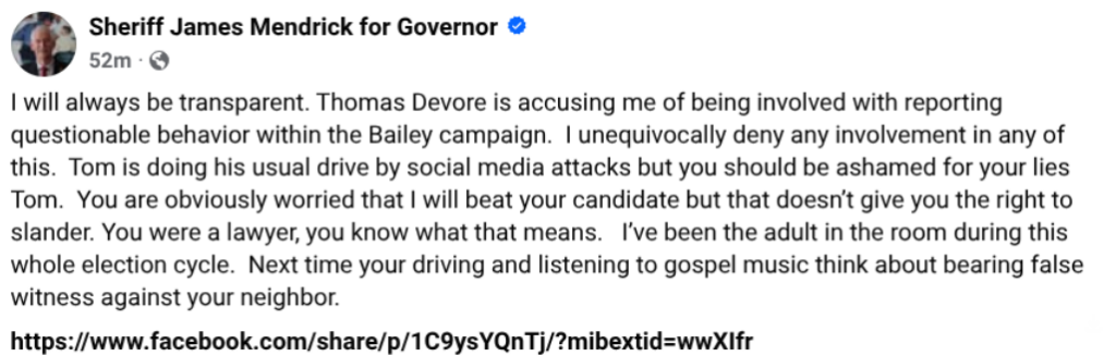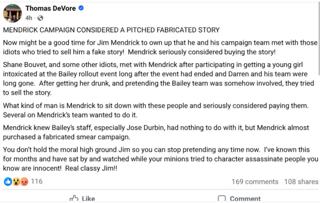 Recently, this internet exchange between DeVore and candidate James Mendrick appeared: