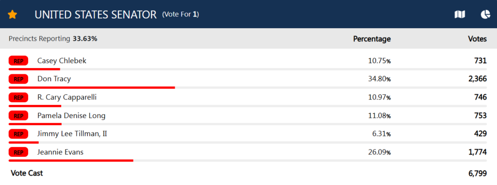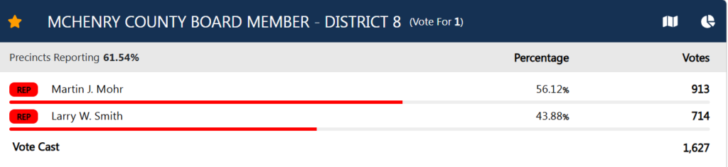 Don Tracy leading in McHenry County, as well as statewide.
