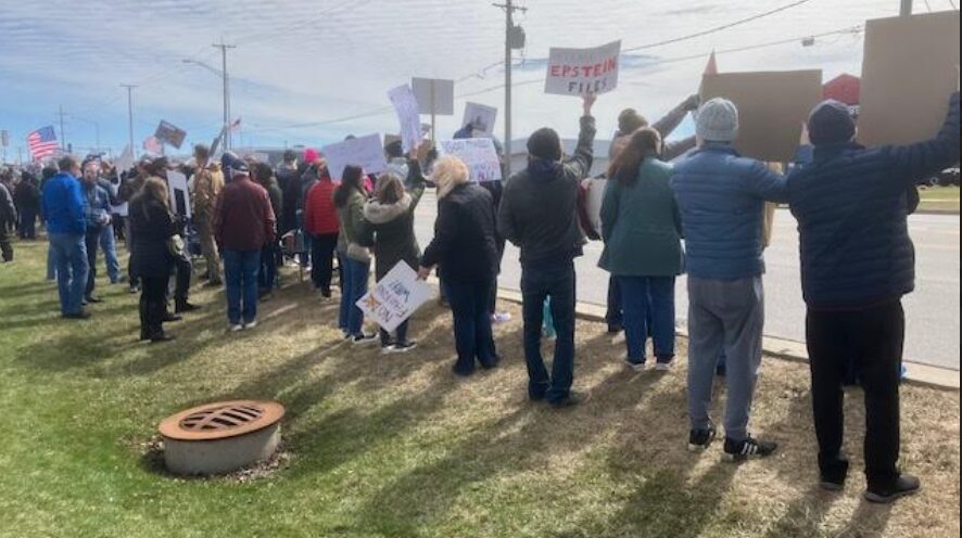 Two of the signs here reference the Epstein Files.