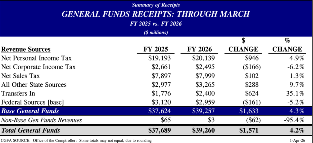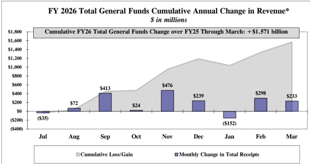 As can be seen below, personal income tax receipts are up, while corporate taxes are down.